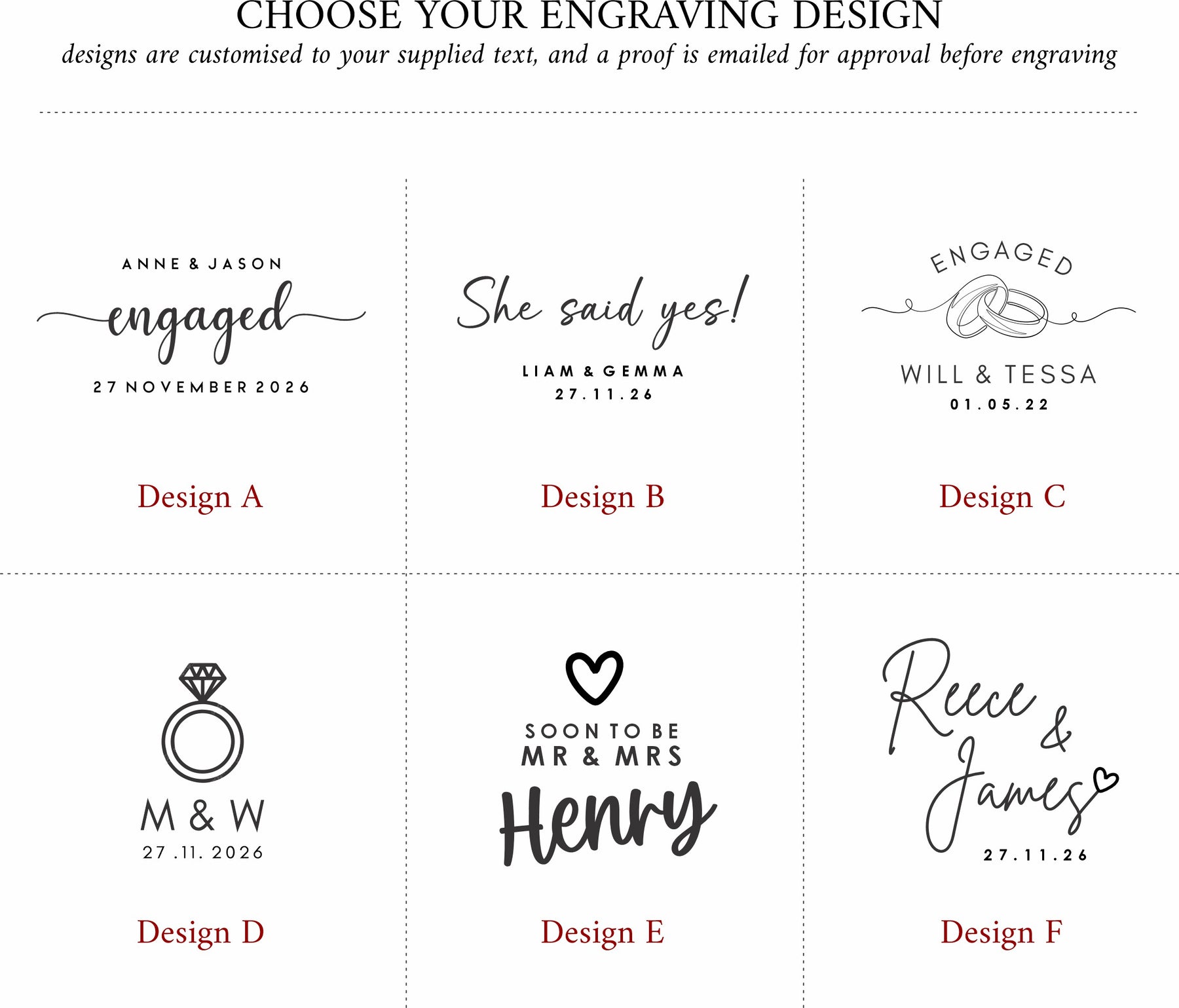 Please select which engraving style you prefer, and include your details in the Engraving Details section. A proof will be sent once the order is received.