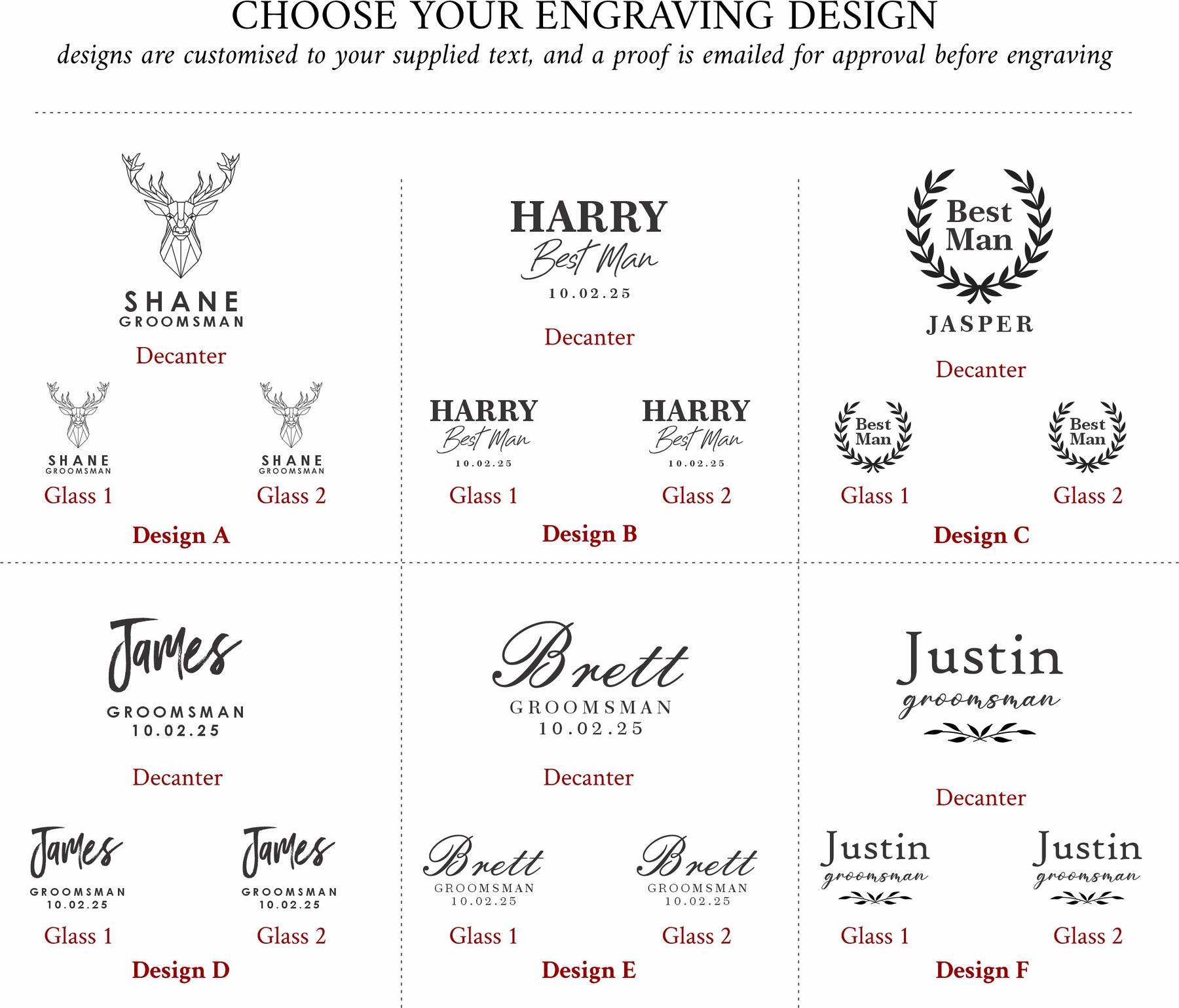 Select which engraving design you would like engraved on each item.