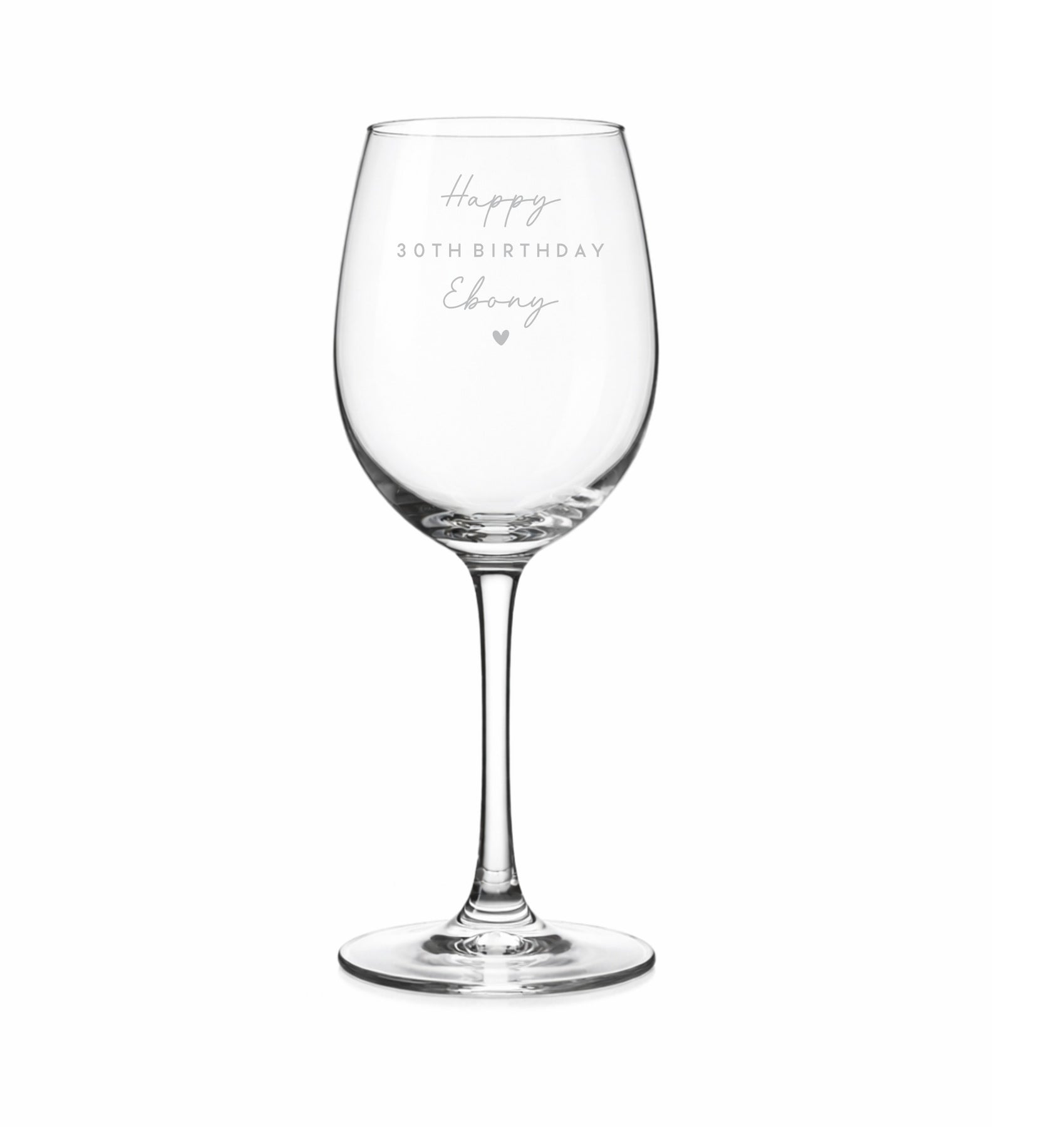 Celebrate in style with this refined 320ml wine glass, elegantly engraved to commemorate a special birthday. Crafted for those who appreciate the finer things, this timeless piece combines classic design with personalised charm. The custom engraving adds a distinguished touch, making it a thoughtful gift that will be treasured for years to come. Perfect for marking milestones with grace and sophistication.