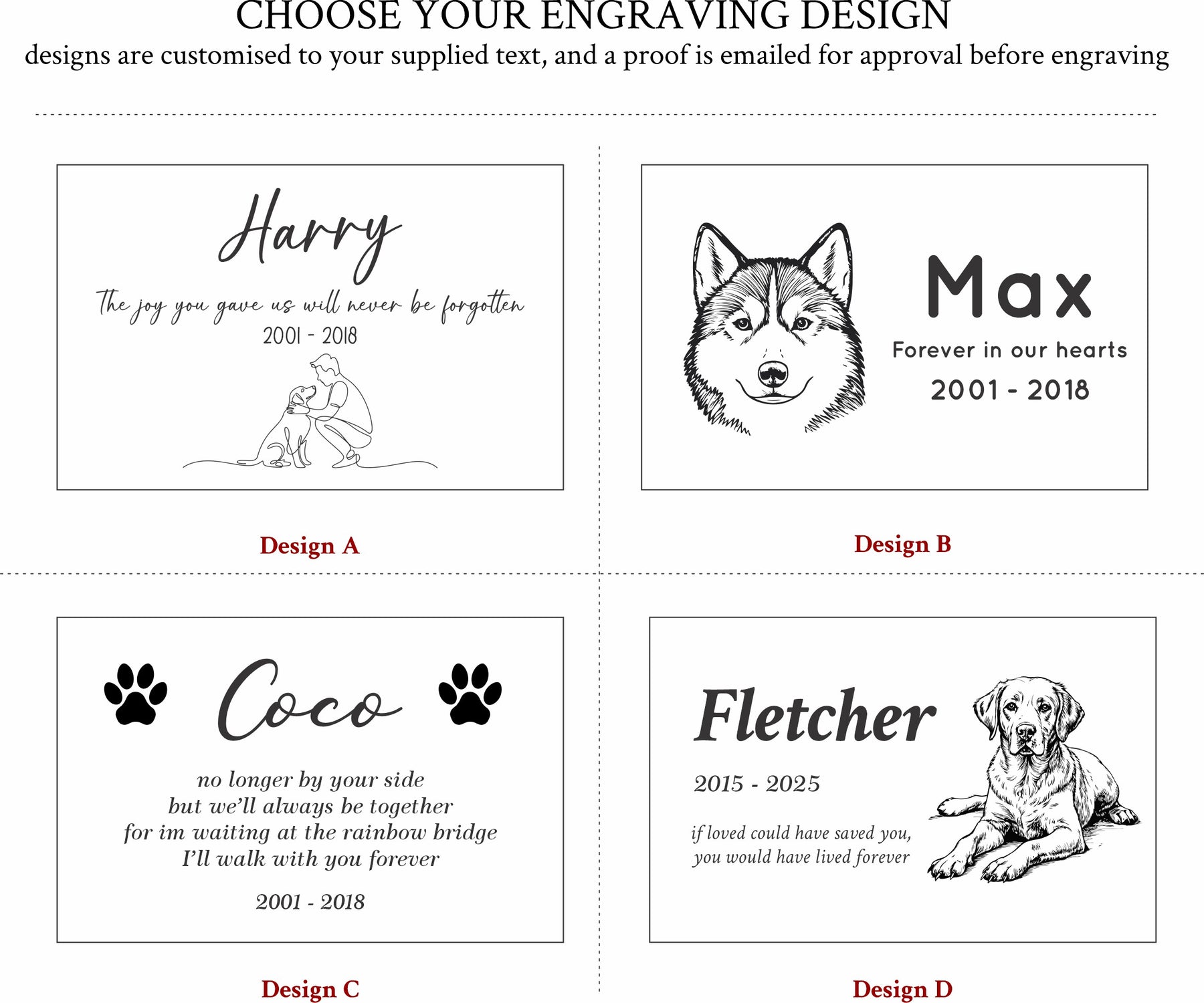 Please select which engraving style you prefer, and include your details in the Engraving Details section. A proof will be sent once the order is received.