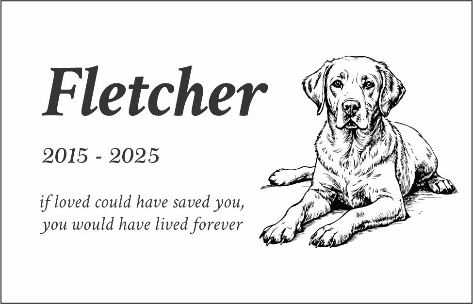 Honour your beloved companion with this elegant slate pet memorial plaque. Measuring 280 x 180mm, it provides a meaningful space to celebrate your dog's memory with a personalised engraving. The plaque arrives complete with a sturdy acrylic stand, ready to display in your home as a lasting tribute. A thoughtful way to keep their spirit close and cherish the joy they brought into your life.