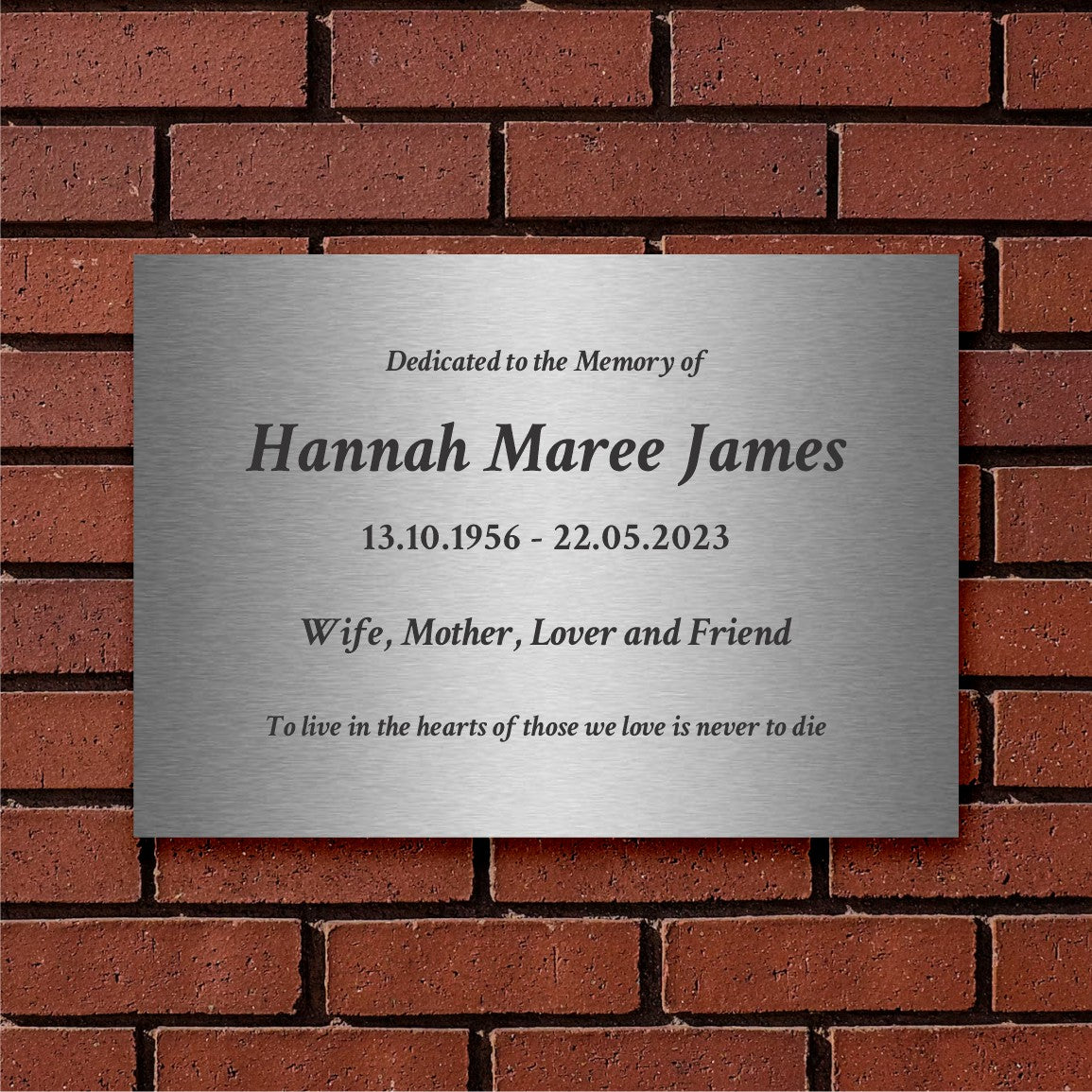 Honour your loved ones with this premium stainless steel memorial plaque. Crafted from brushed 3mm thick stainless steel, it features crisp laser-engraved black text that stands the test of time. The A4 size provides ample space for meaningful tributes, while the durable construction ensures it remains a lasting tribute in any outdoor setting. A dignified way to celebrate cherished memories.