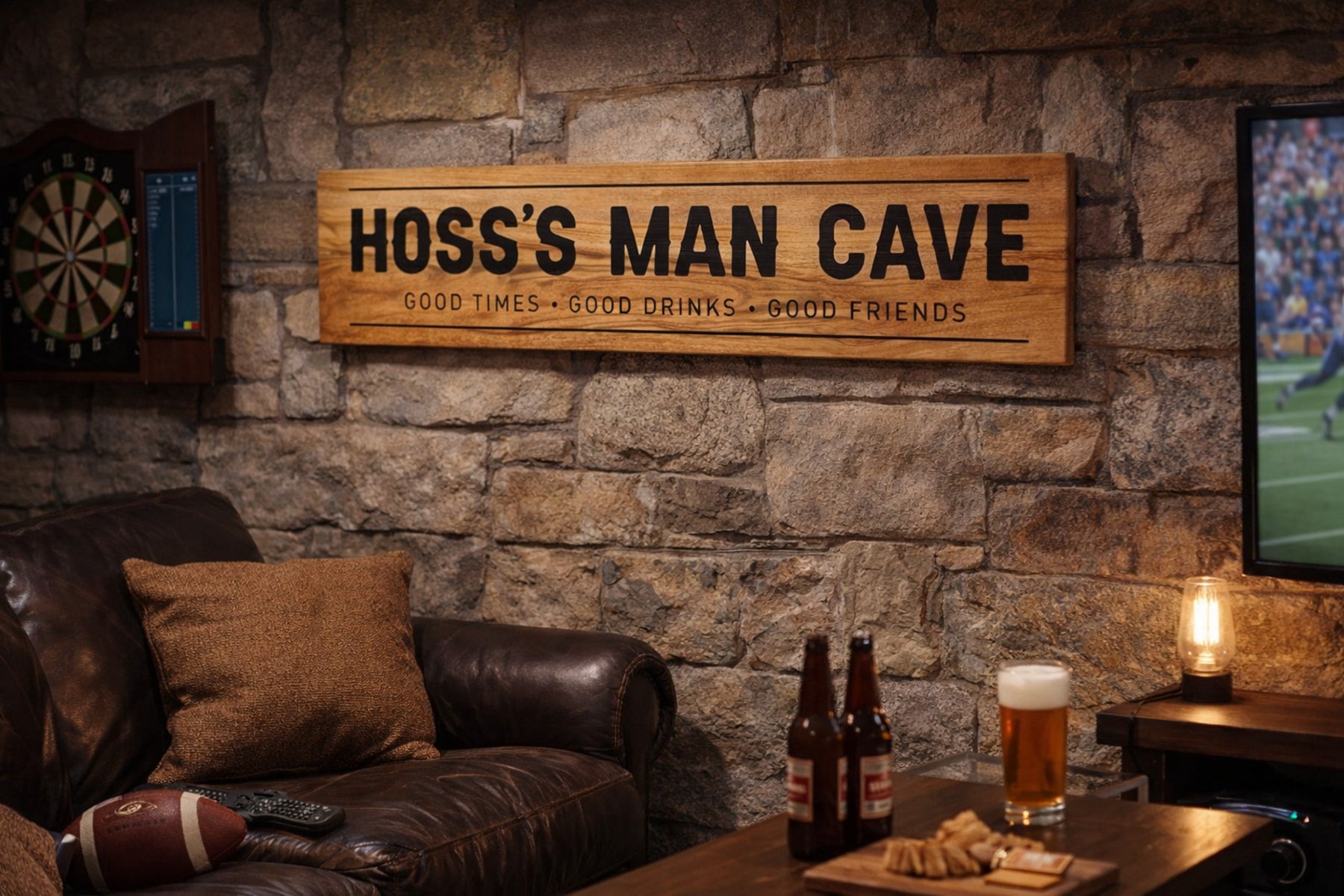 Transform your man cave into the ultimate hangout spot with our Timber Man Cave Sign. Made from solid timber and engraved with bold black paint, this sign adds a touch of personality and durability to any man cave. Get ready to impress your friends and make a statement with this one-of-a-kind addition.